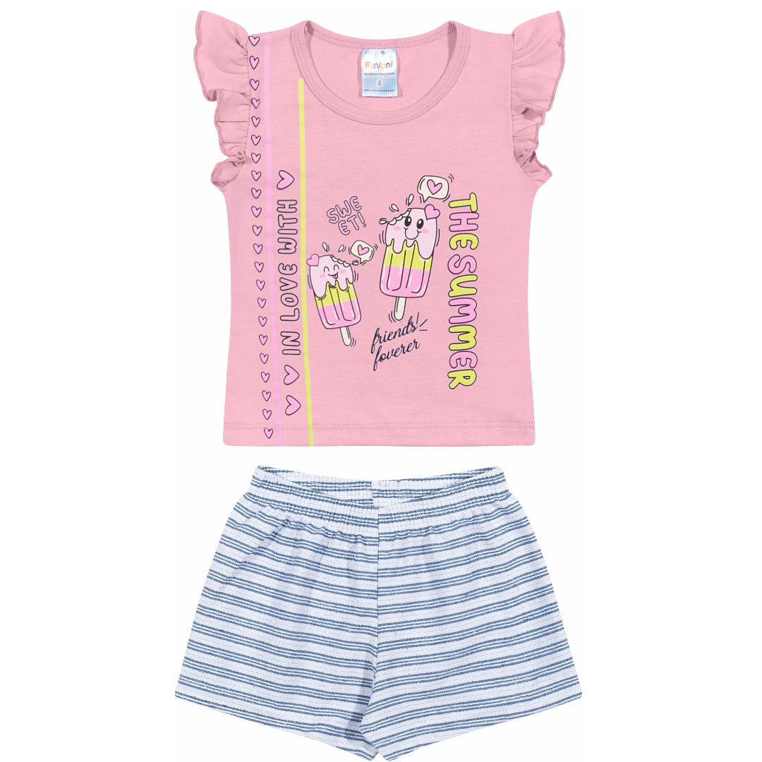 Conjunto Blusa E Shorts Confeccionado em tecido Cotton / Moletinho Ecologico Listrado