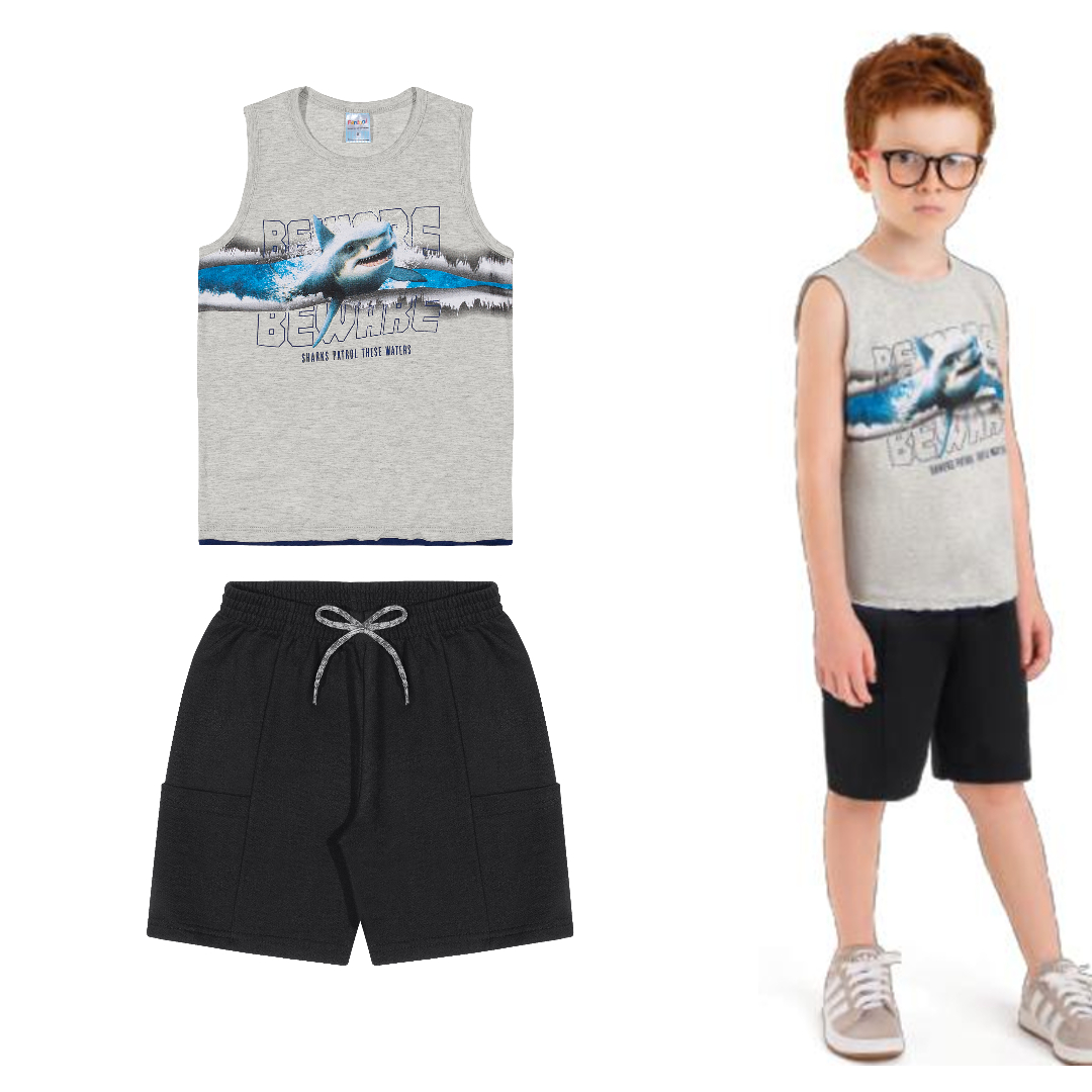 Conjunto com Regata Machão Confeccionado em tecido Meia Malha Mescla + Bermuda Moletinho.