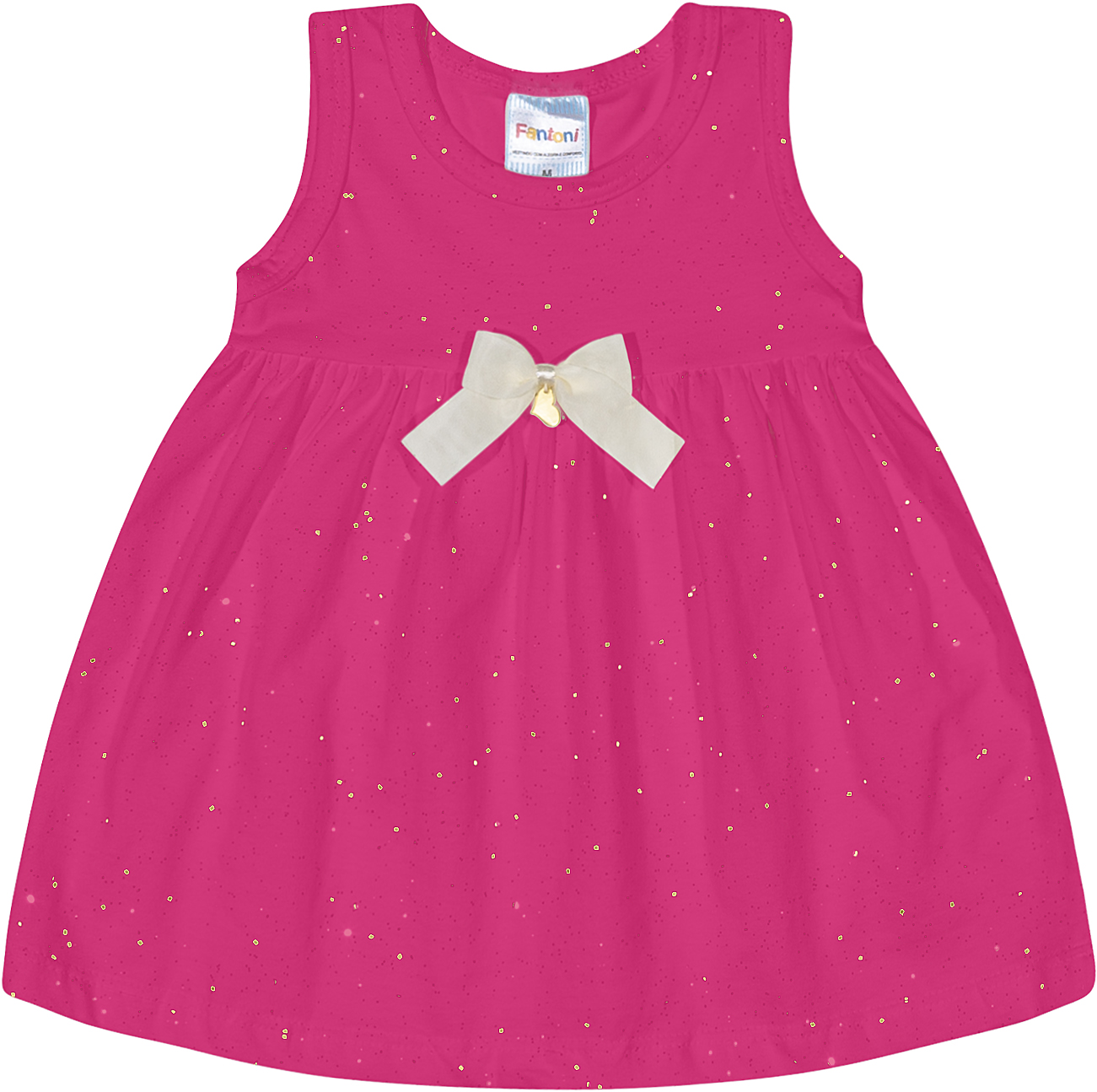 Confeccionado em tecido Meia Malha Fio Penteado, manga regata, detalhe de laço com brilho.